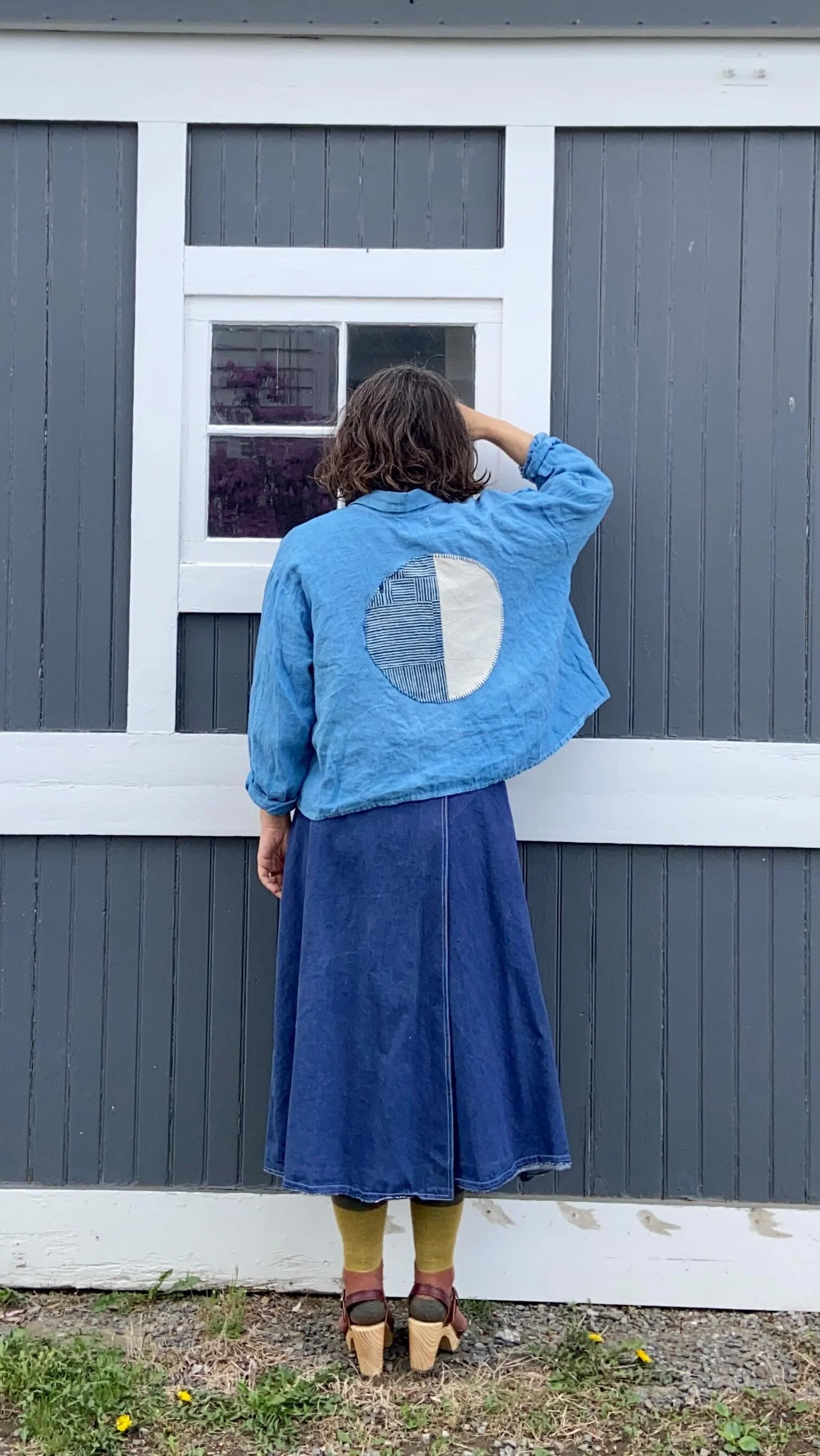 I prioritize sustainable materials in my studio: Organic cotton, linen, hemp, wool, etc. I also use secondhand materials whenever possible— off-cuts and upcycled fabrics. I find endless inspiration in distressed vintage quilts, denim work wear, and heavy linen. I use biodegradable packaging in my shop. I work with local fiber farms, and a local fiber mill, to make yarn for projects like my limited-edition darning kits. I love to collaborate with local craftsfolk. A percentage of shop earnings are donated to projects that support people and the planet. I use mostly garden-grown or locally-harvested plants for my natural dyes. Lastly, I believe the arts are essential to a healthy society and that nature is the ultimate guide.