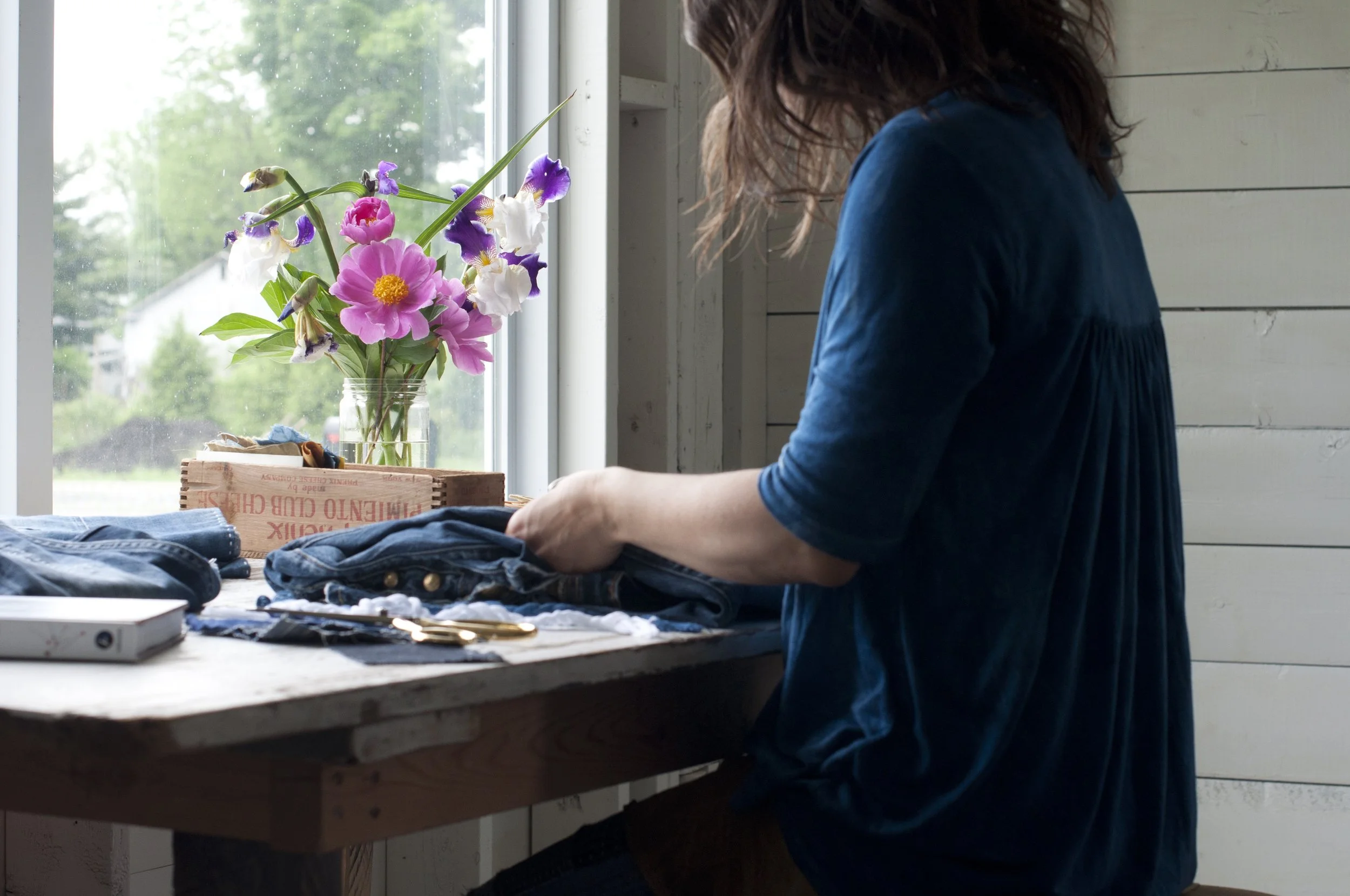 Katrina Rodabaugh is an artist, writer, and teacher working across disciplines to explore environmental and social issues through craft techniques. Mostly, she rethinks the relationship between fiber art, sustainability, and fashion. She’s the author of three books including Make Thrift Mend (2021), Mending Matters (2018), and The Paper Playhouse (2015). Her work has appeared in the New York Times, Boston Globe, Martha Stewart Living, Selvedge Magazine, Sunset magazine, Taproot magazine, Tauko magazine, and more.
