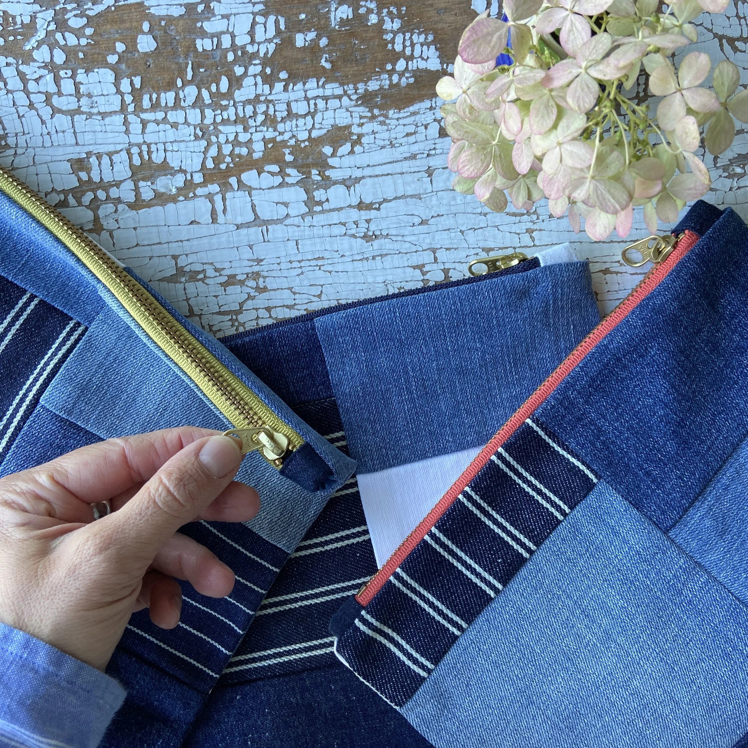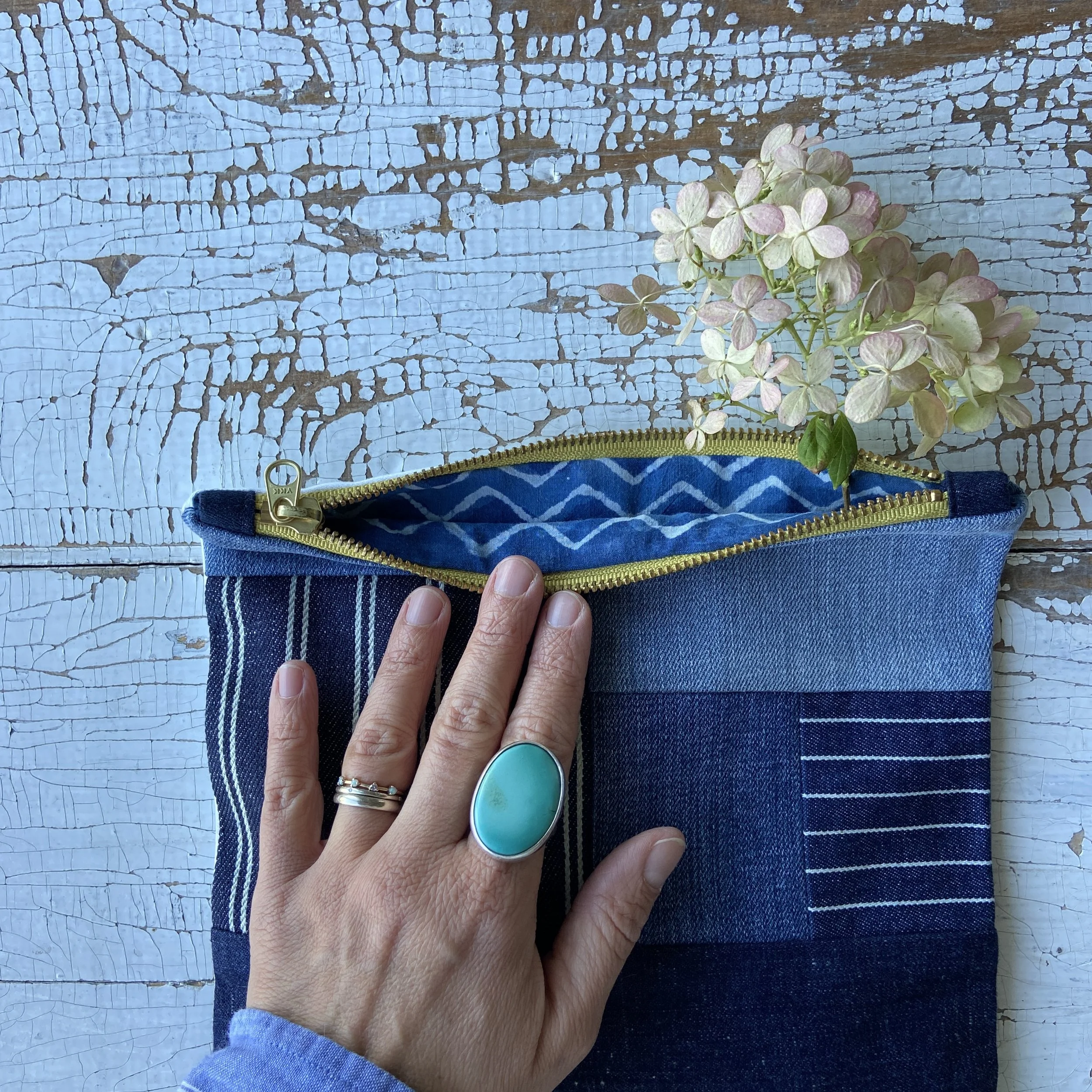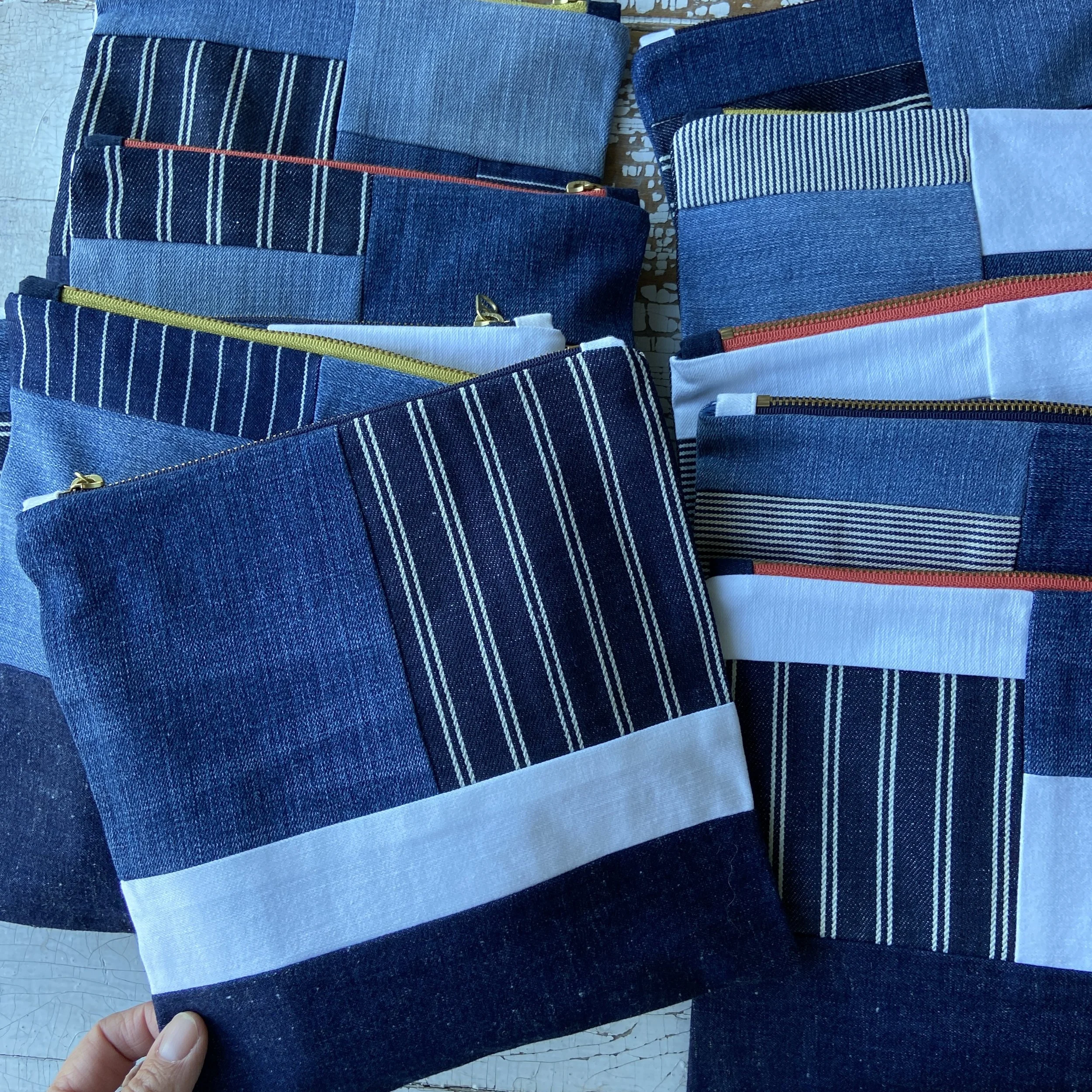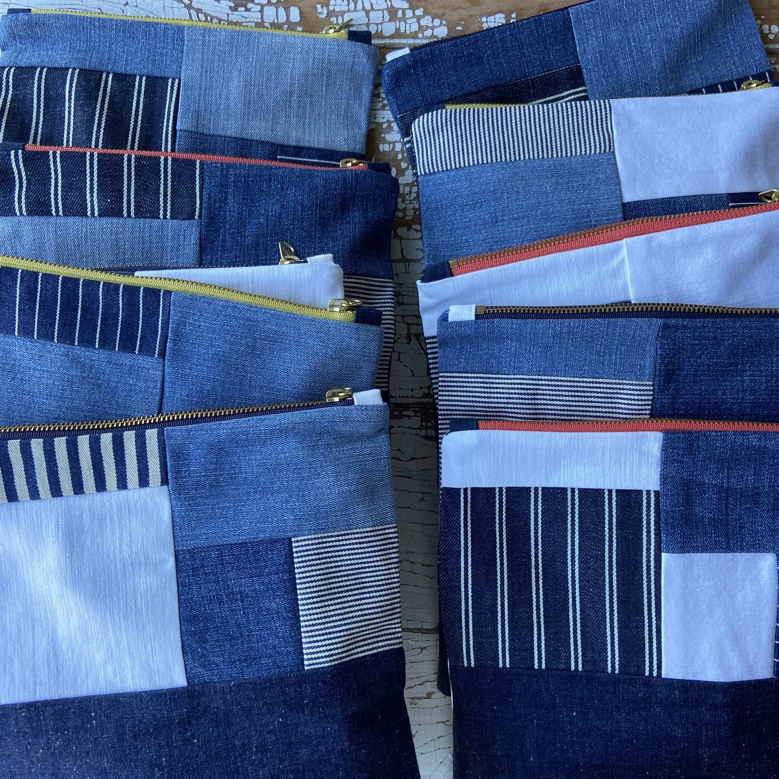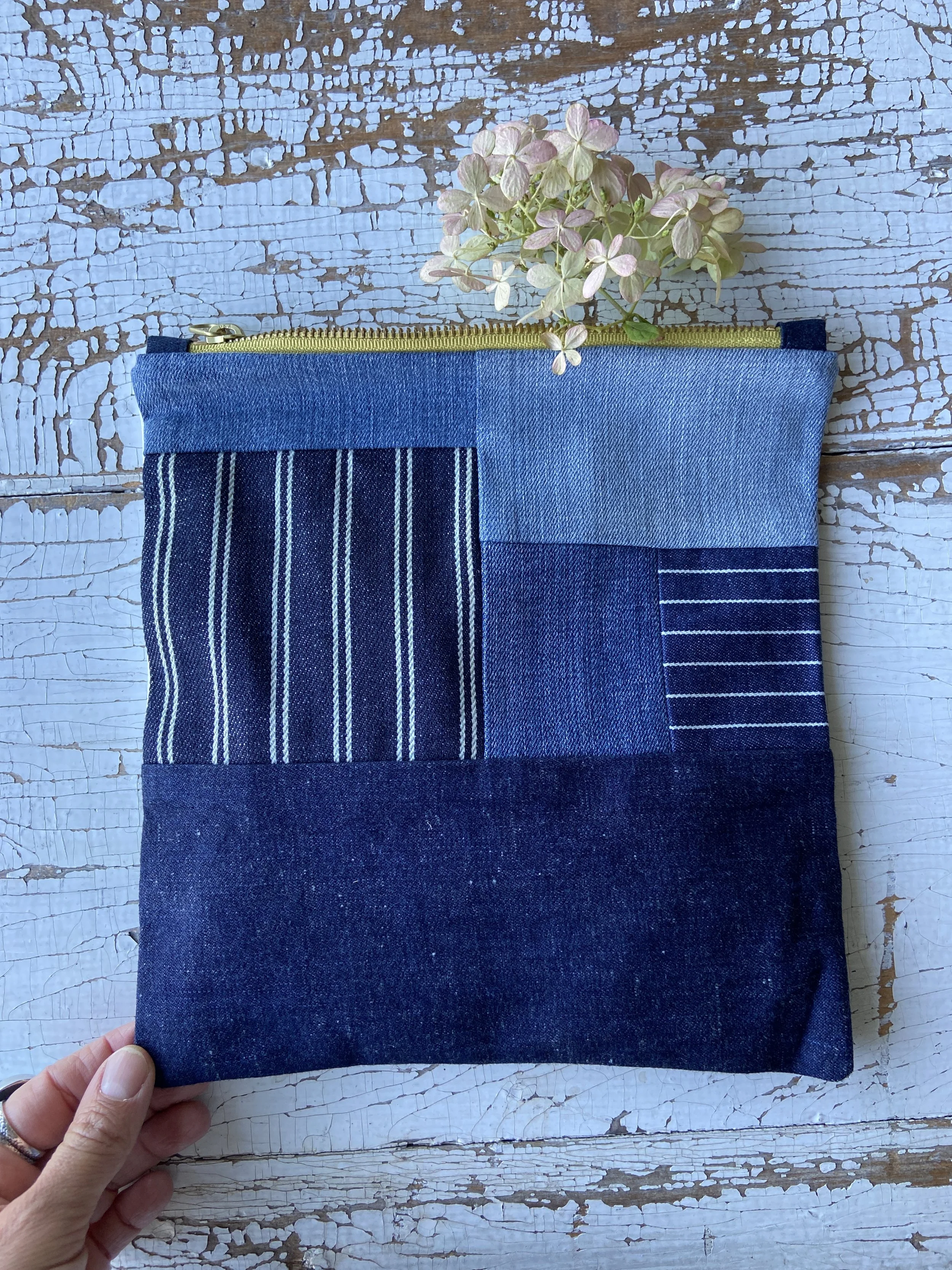 -One sewn, patchwork, one-of-a-kind, needle book made with upcycled denim, heirloom denim, deadstock or organic cotton lining, and felt pages made with local Hudson Valley farm wool. Closes with a handmade wooden button.