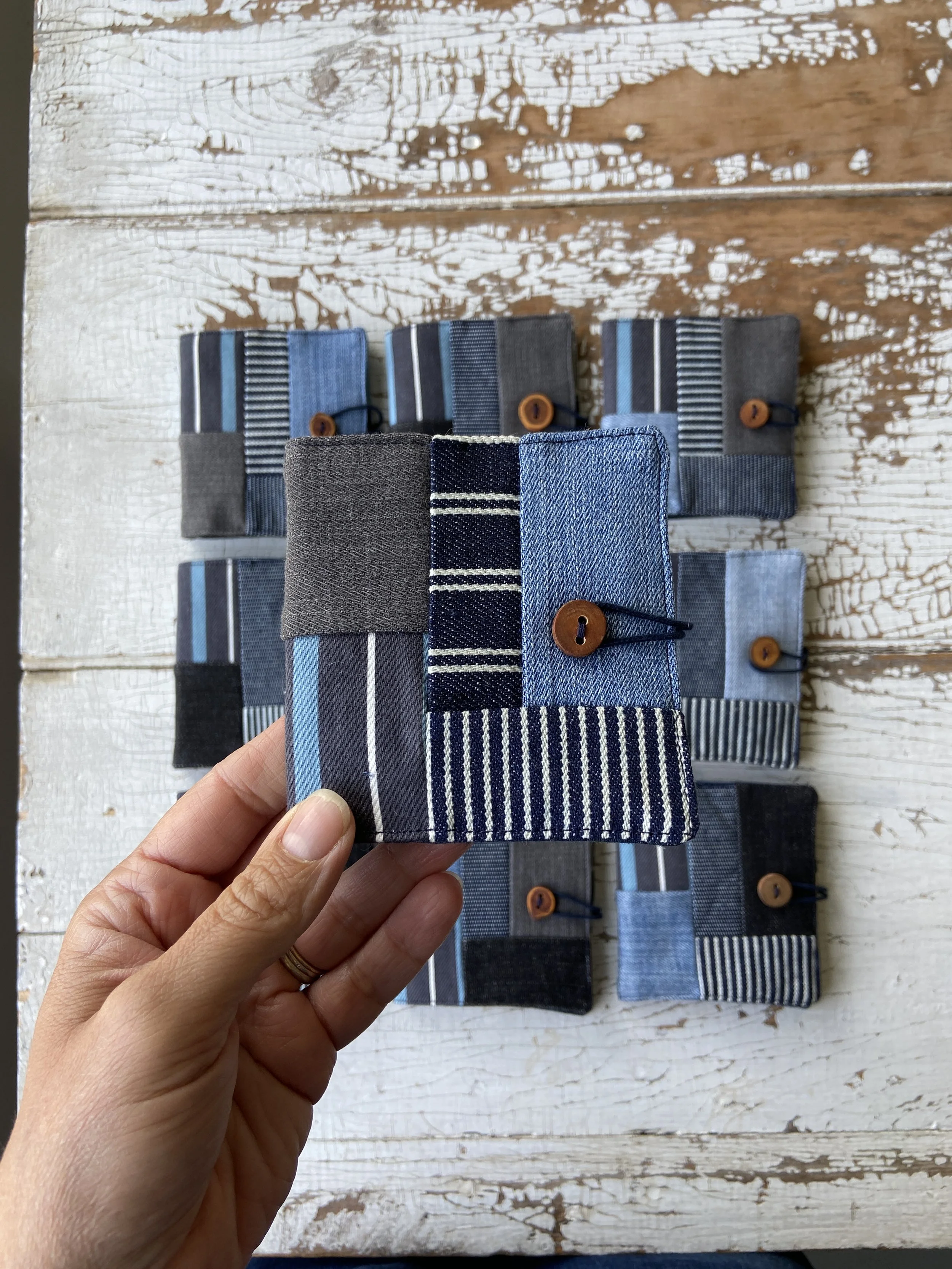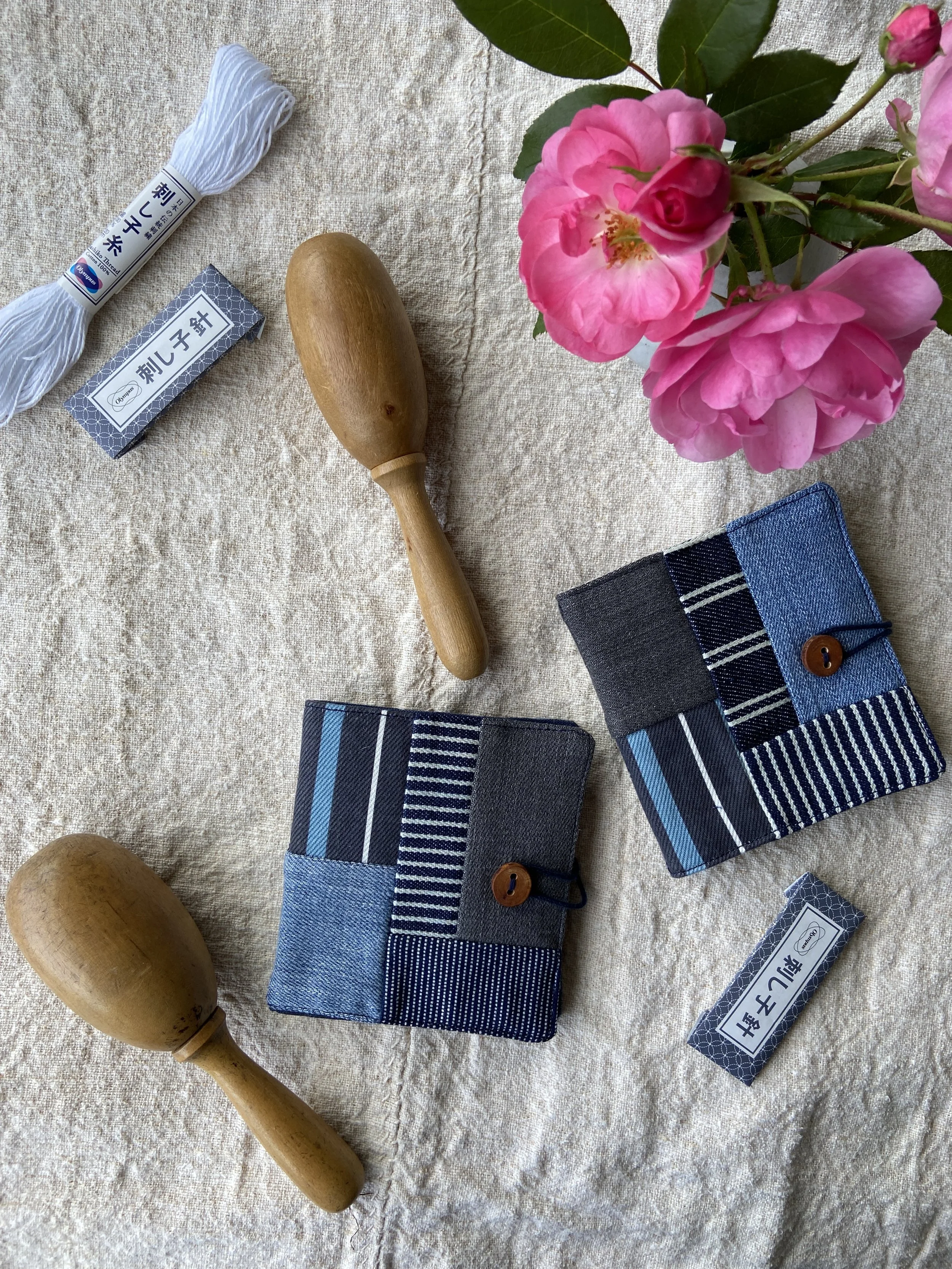 Each kit also includes one handmade wooden darning egg made by my husband using local wood, these are truly one-of-a-kind beautiful mending tools. Lastly, each kit contains one needle book designed by me and sewn by my studio assistant in the Hudson Valley using lovely patchwork cotton fabrics, one handmade wooden button, and the book pages are local felt. Each needle book contains three metal darning needles. Books measure approx. 4" x 4" when folded.